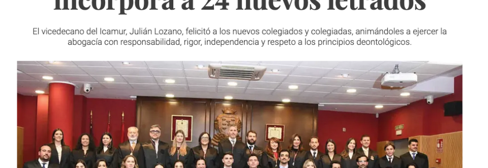 15 Dic 2025 El Colegio de la Abogacía de la Región incorpora a 24 nuevos letrados (Murcia Diario) Noticia completa aquí